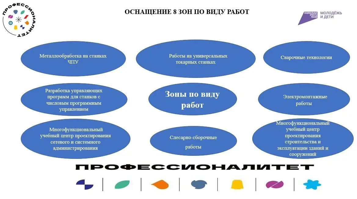 Оснащение 8 зон по виду работ: