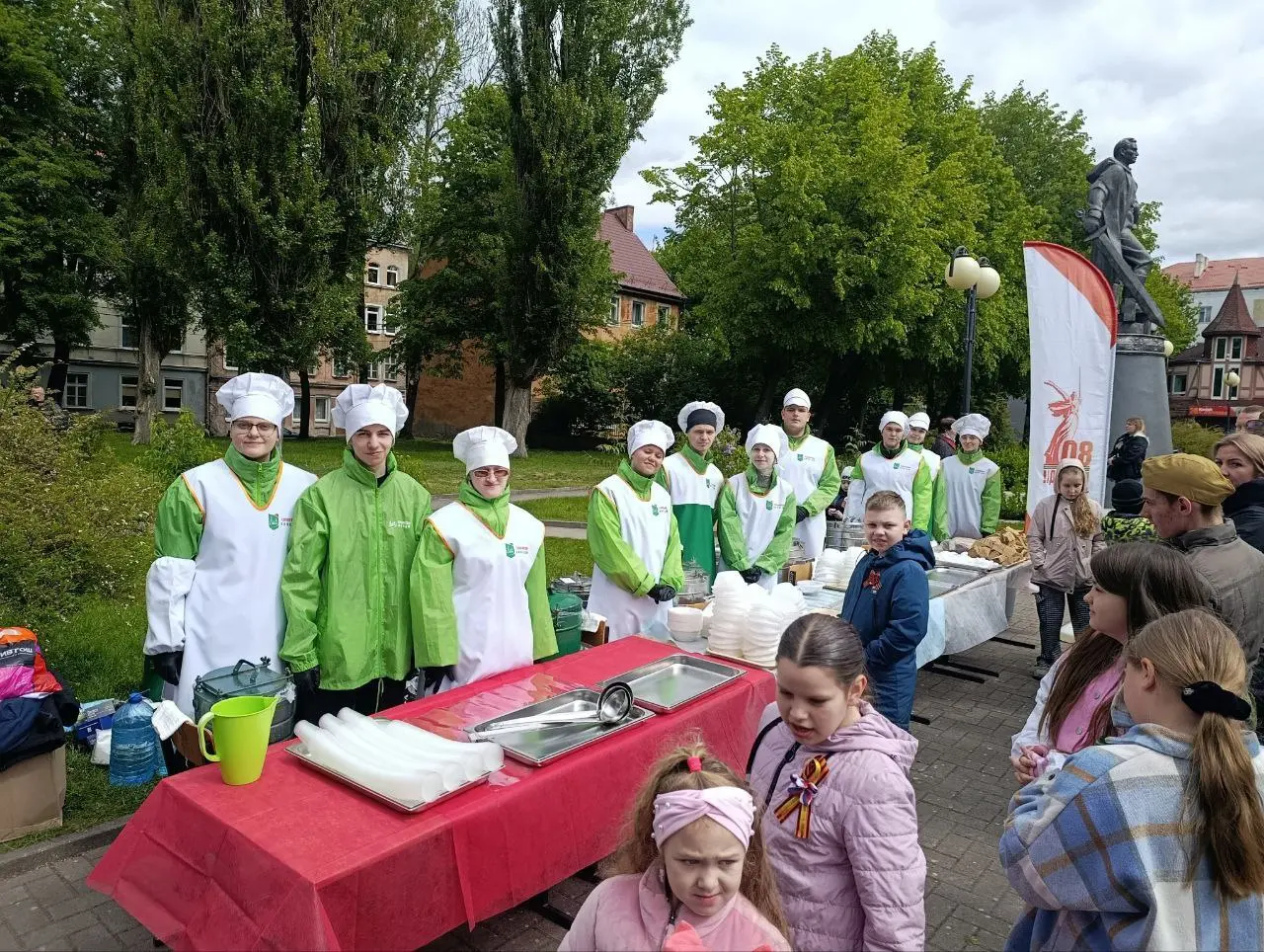 В честь 80-летия Великой Победы и года защитника отечества, 9 мая ГБУ КО ПОО "Технологический колледж" принял участие в мастер классе по изготовлению броши из георгиевской ленты, в литературно-музыкальной площадке "На привале", организовал работу полевой кухни "Фронтовой привал".