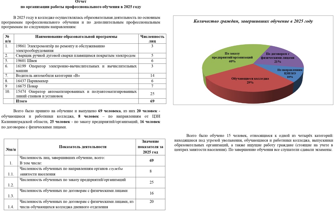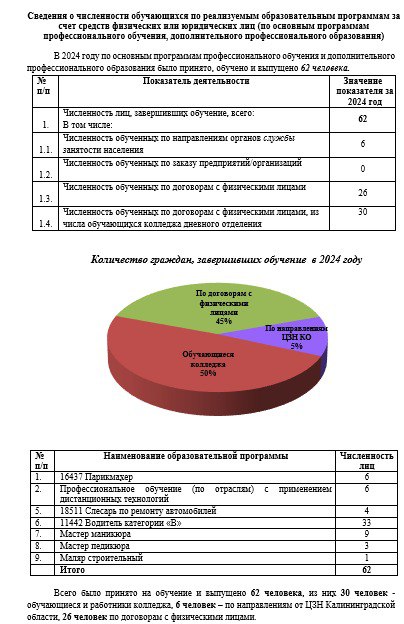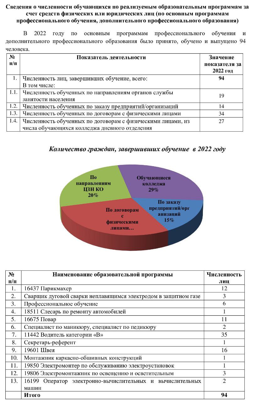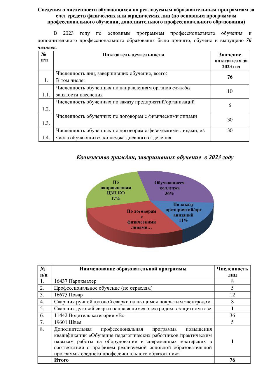 Сведения о численности обучающихся по программам профессионального обучения дополнительного профессионального образования